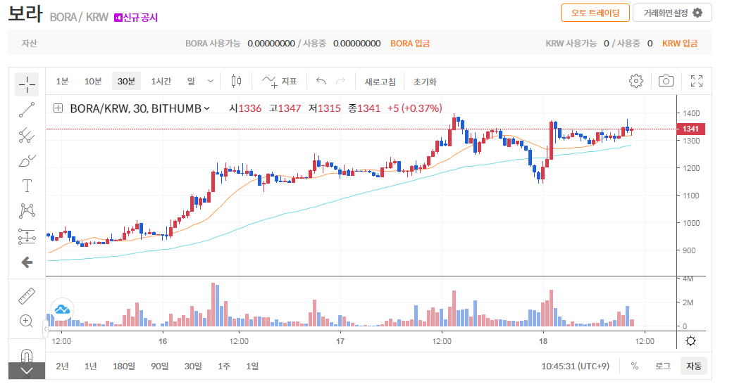 다 바스러져가는 코인판에서 12/18(토) 기준 16.22% 상승률을 보이고 있는 보라코인